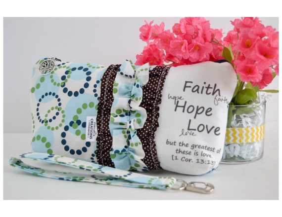 Stylish & functional large Sequoia wristlet or clutch to carry your everyday necessitates (iPhone/cellphone, cash, credit cards, lipstick, etc.) while expressing your faith! Great for on the go, cosmetics, or to organize your bag/purse. These unique wristlets will make great gifts of encouragement for yourself/others or the perfect accessory for bridal parties, ministries, growth groups, etc.