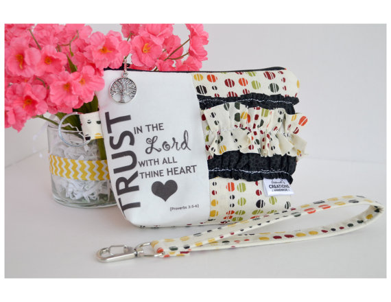 Stylish & functional small Sequoia wristlet or clutch to carry your everyday necessitates (iPhone/cellphone, cash, credit cards, lipstick, etc.) while expressing your faith! Great for on the go, cosmetics, or to organize your bag/purse. These unique wristlets will make great gifts of encouragement for yourself/others or the perfect accessory for bridal parties, ministries, growth groups, etc.