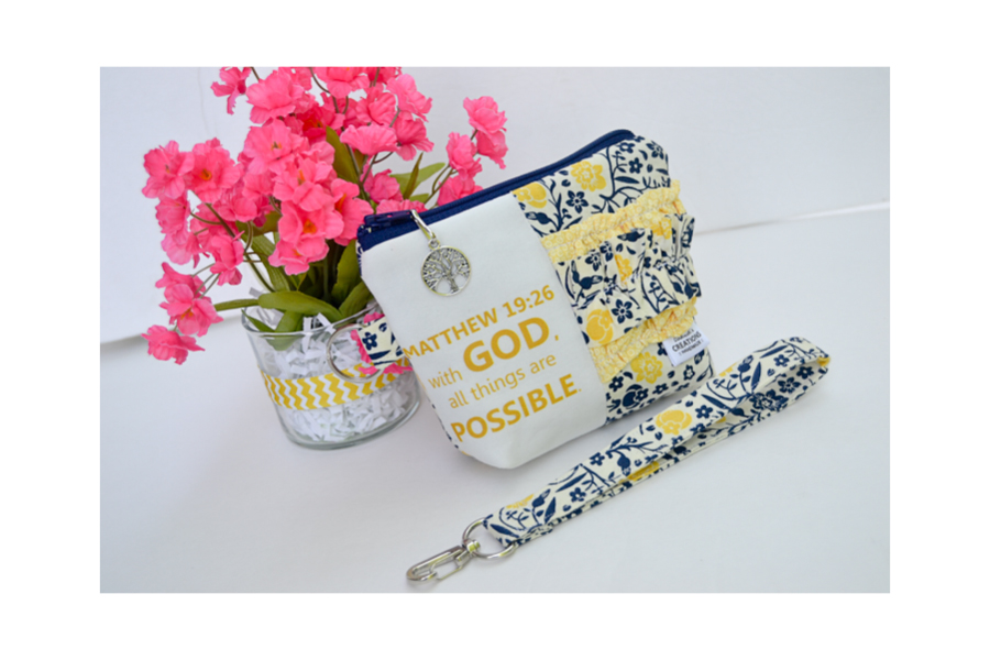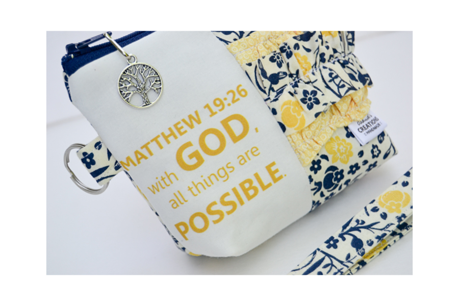 Small Zippered Wristlet/Clutch Accented with Ruffles and Scripture