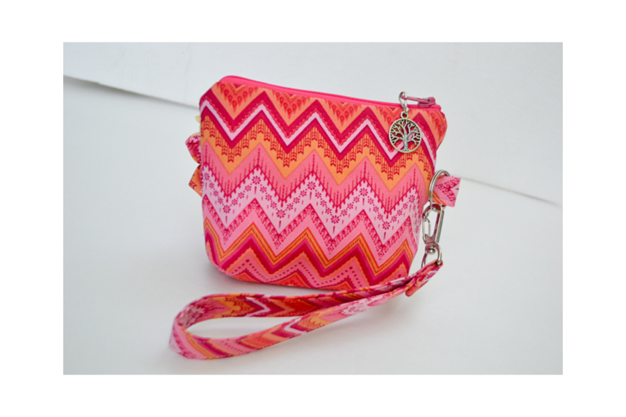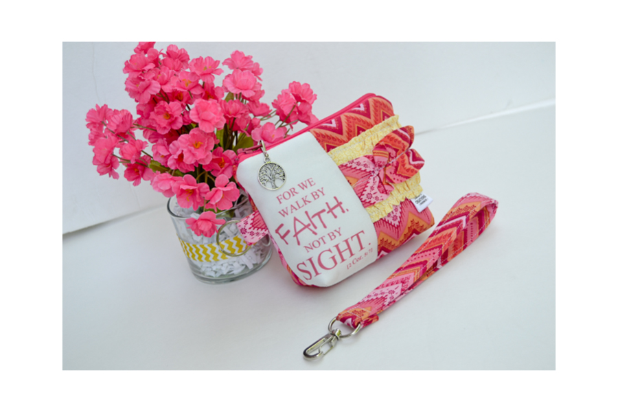 Small Zippered Wristlet/Clutch Accented with Ruffles and Scripture