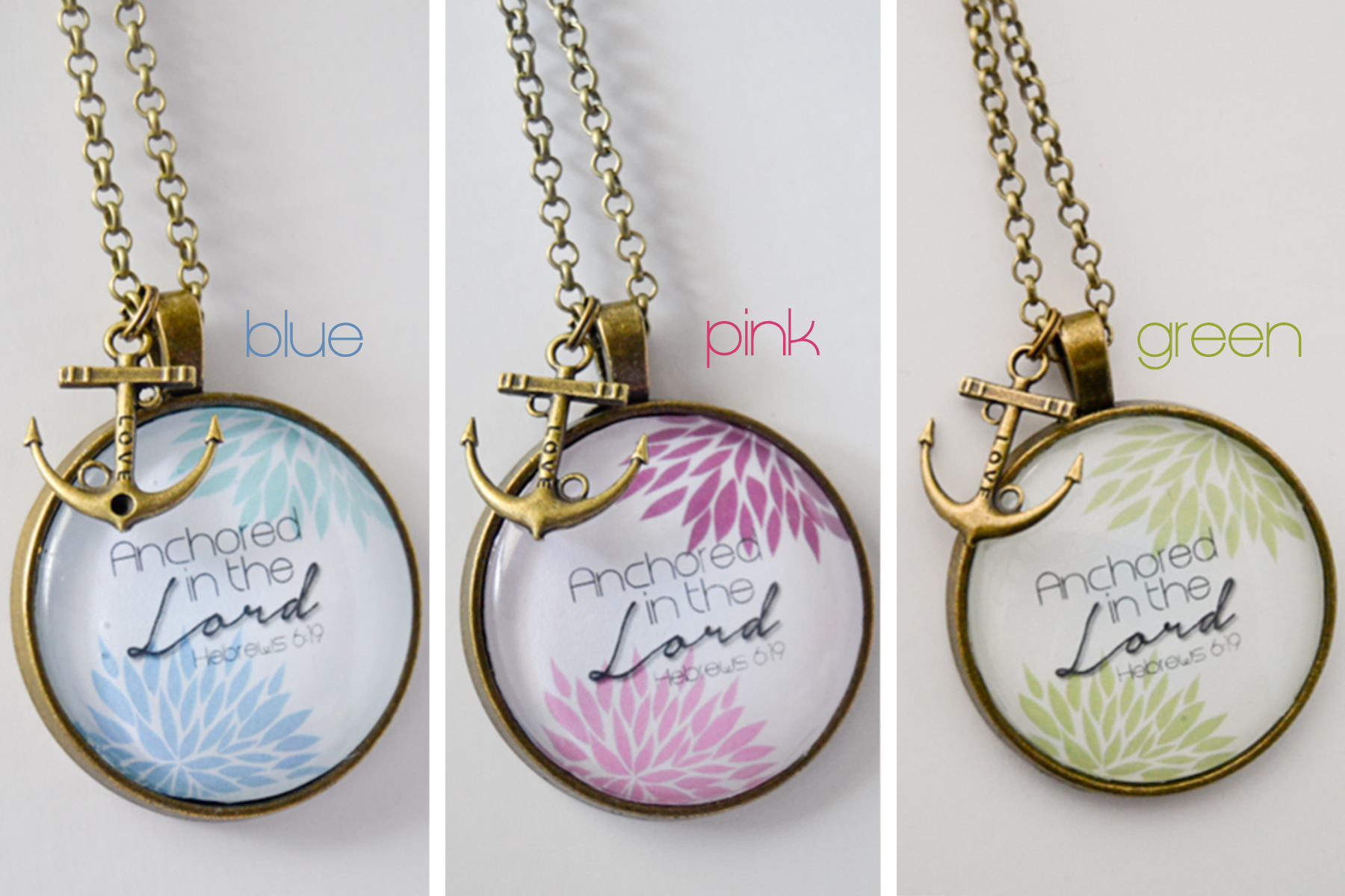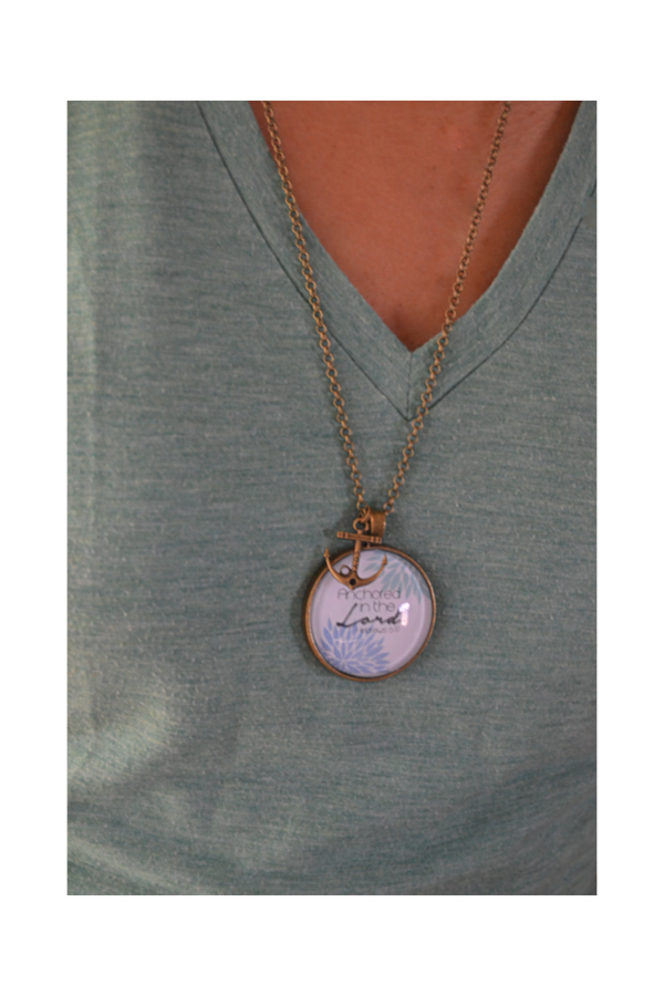 "Anchored in the Lord" Scripture Pendant Necklace (Blue)