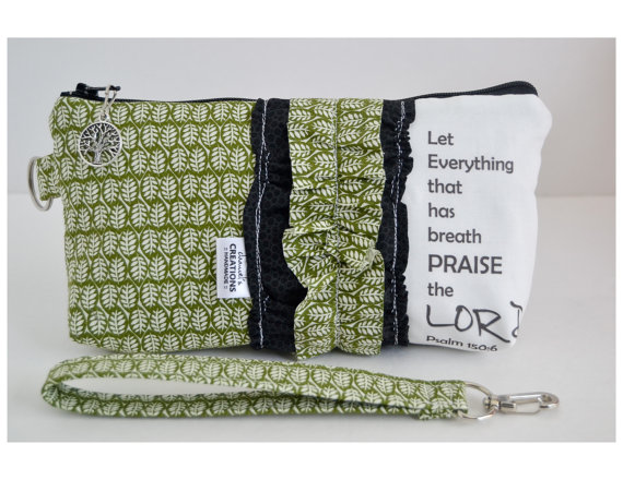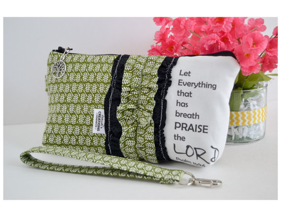 Stylish & functional large Sequoia wristlet or clutch to carry your everyday necessitates (iPhone/cellphone, cash, credit cards, lipstick, etc.) while expressing your faith! Great for on the go, cosmetics, or to organize your bag/purse. These unique wristlets will make great gifts of encouragement for yourself/others or the perfect accessory for bridal parties, ministries, growth groups, etc.