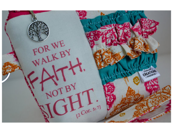 (Inside lining, zipper, thread, and scripture colors will vary and will coordinate with fabric)