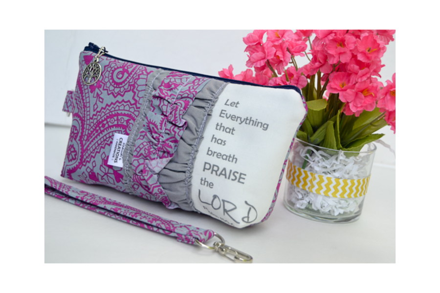Large Zippered Wristlet/Clutch Accented with Ruffles and Scripture